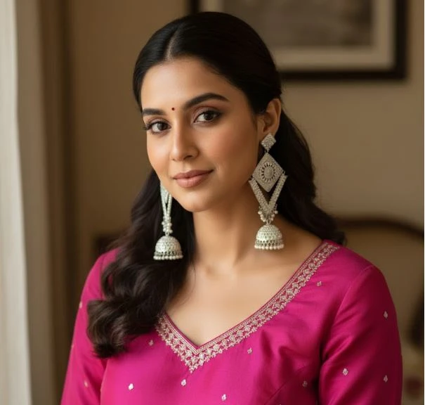 Boldly designed, these Geometric Silver Jhumka Drop Earrings fuse traditional bell drops with striking modern shapes. The oxidised silver-look finish and sharp geometric patterns create an edgy yet ethnic aesthetic. Finished with small white faux pearls, these earrings are a perfect choice for those who love contemporary design with a classic foundation.