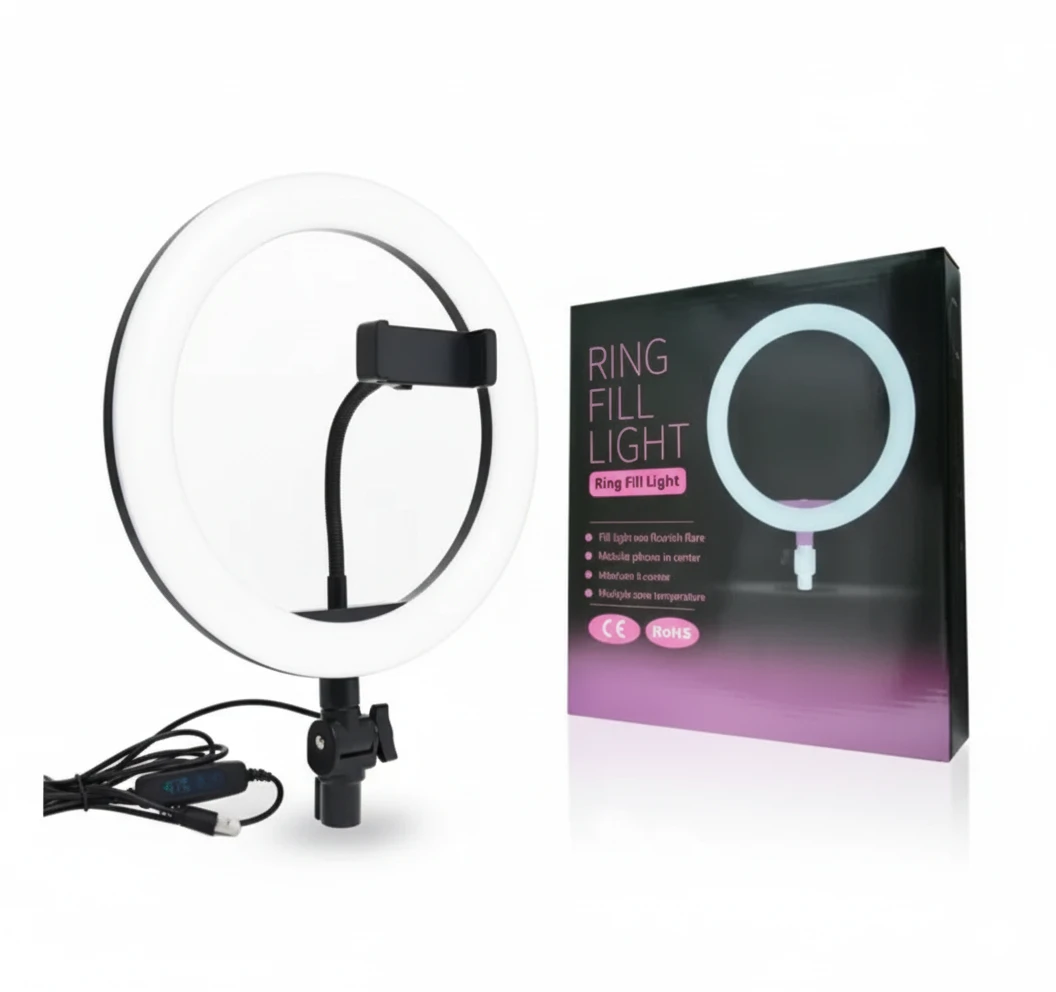 The 10 Inch (26 cm) LED Ring Fill Light with tripod is engineered for creators who demand professional lighting in every frame. It provides bright, even, and adjustable illumination that enhances skin tones and highlights the eyes, making videos and photos look more polished. The included tripod and mobile phone holder offer stable, hands-free shooting from multiple angles. Ideal for TikTok, beauty content, streaming, meetings, and product photography.