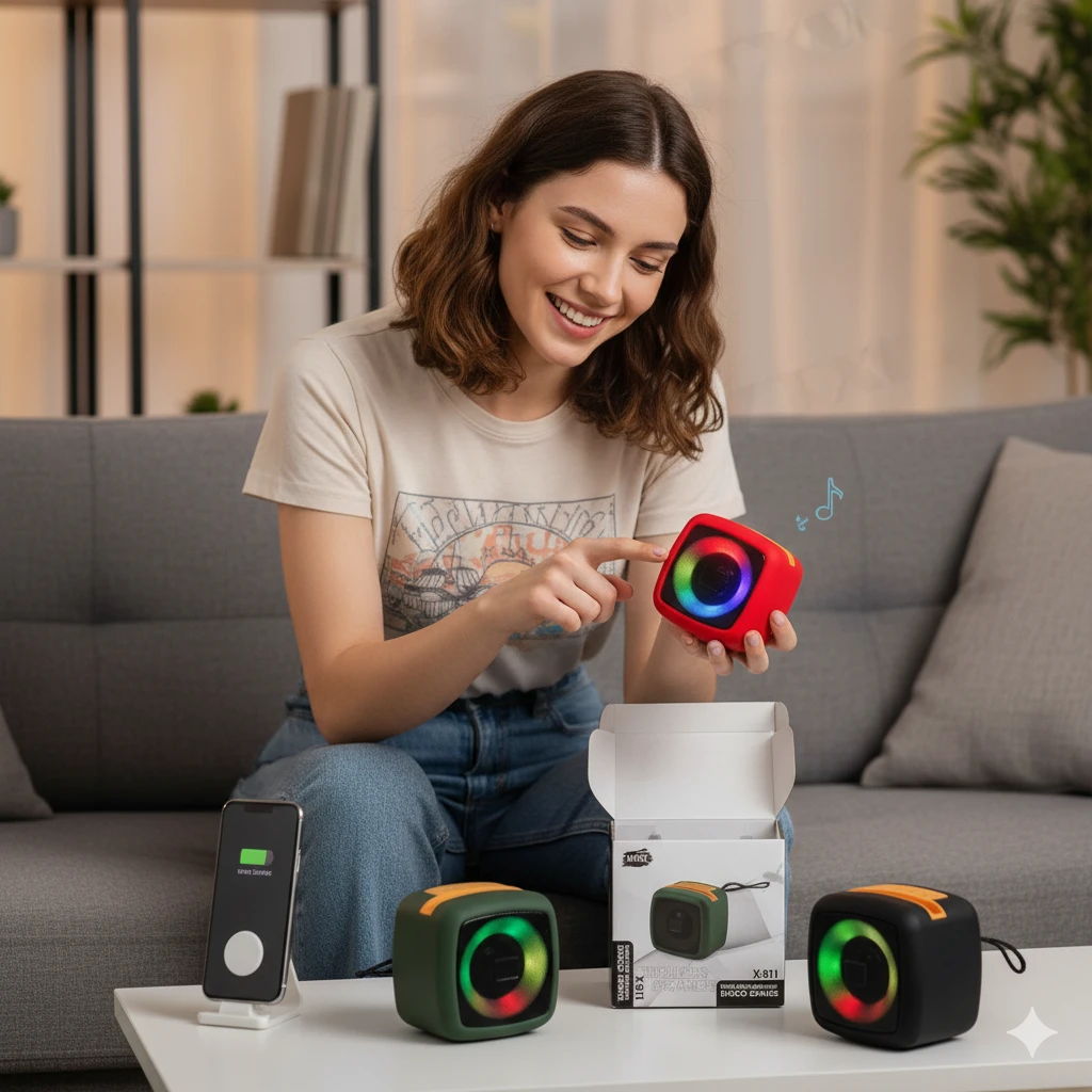 Get the party started anywhere with the Mini Disco Speaker X-911! This compact and powerful wireless speaker is your all-in-one entertainment hub, perfect for parties, gatherings, or just chilling out. Featuring vibrant, multi-coloured LED lights that pulse to the beat, the X-911 turns any space into a mini disco.